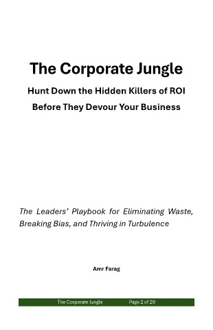The Corporate Jungle Hunt Down the Hidden Killers of ROI Before They Devour Your Business The Leaders’ Playbook for Eliminating Waste, Breaking Bias, and Thriving in Turbulence Amr Farag The Corporate Jungle Page 2 of 29