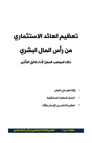 يرامثتسلاا دئاعلا ميظعت يرشبلا لاملا سأر نم ريثأتلا قئاف ءادلأ زَّزعُملا بهاوملا ءاكذ ملعتلا يف ردهلا ةلازإ • ةيلبقتسملا تاراهملاب ؤبنتلا • ةللآاو ناسنلإا نيب مغانتلا ميظعت • يرشبلا لاملا سأر نم يرامثتسلاا دئاعلا ميظعت 24 نم 3 ةحفص