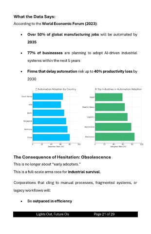 • Firms that delay automation risk up to 40% productivity loss by