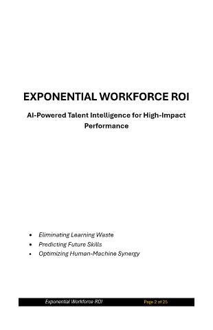 EXPONENTIAL WORKFORCE ROI AI-Powered Talent Intelligence for High-Impact Performance • Eliminating Learning Waste • Predicting Future Skills • Optimizing Human-Machine Synergy Exponential Workforce ROI Page 2 of 25